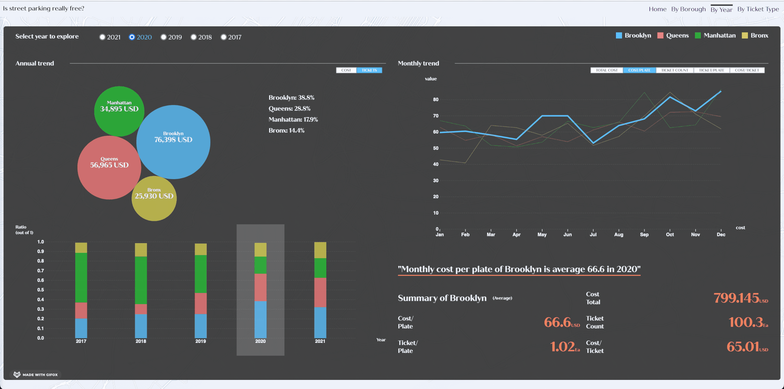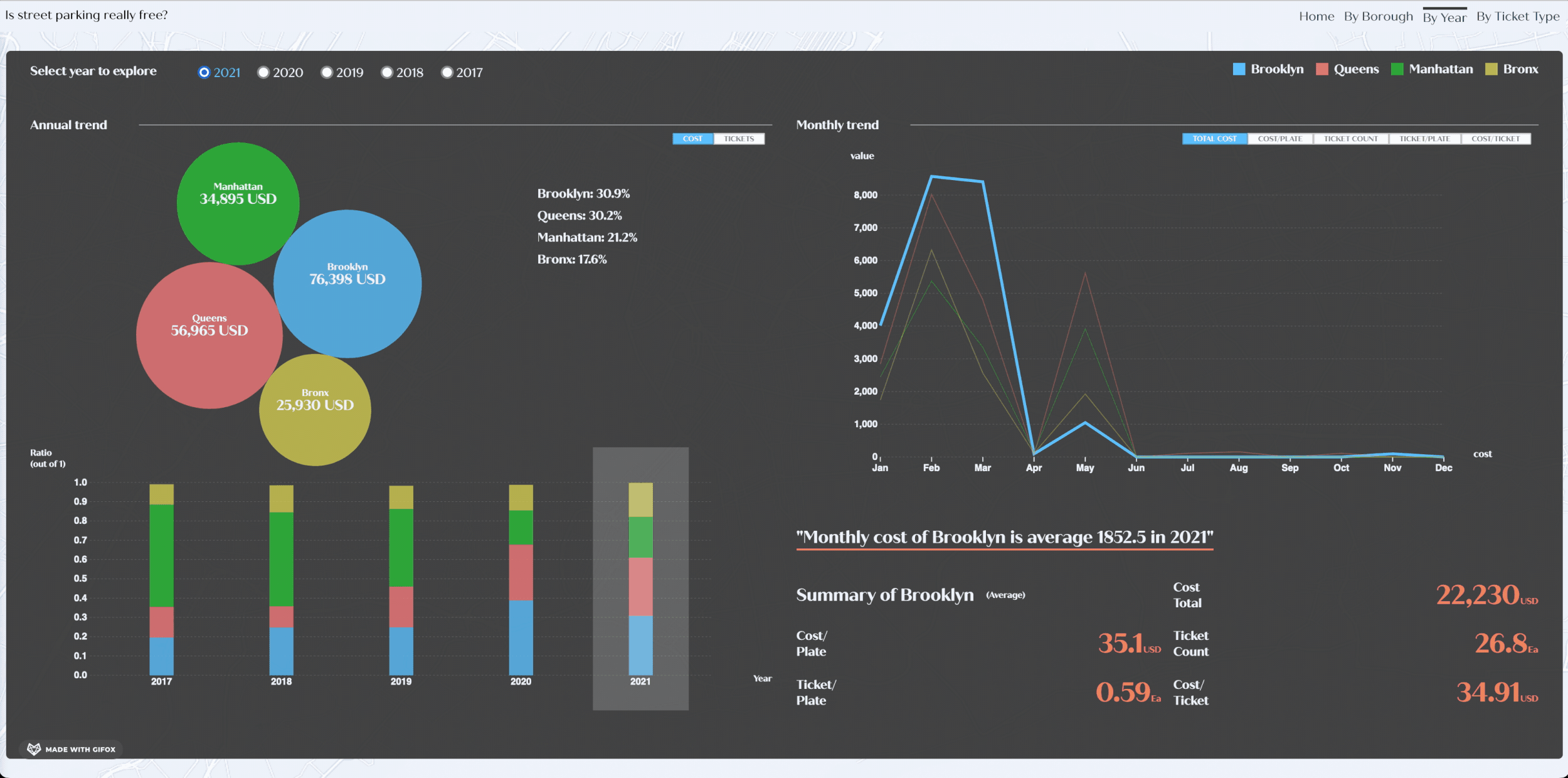 Price, ticket type, trend and frequency of parking tickets by precinct